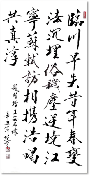 附图为范曾创作《王安石像》和七律《为贤哲王安石而题》诗及诗解。