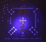 米芾《草书帖》“中”字,于紫光灯下呈现高亮白荧光效果。