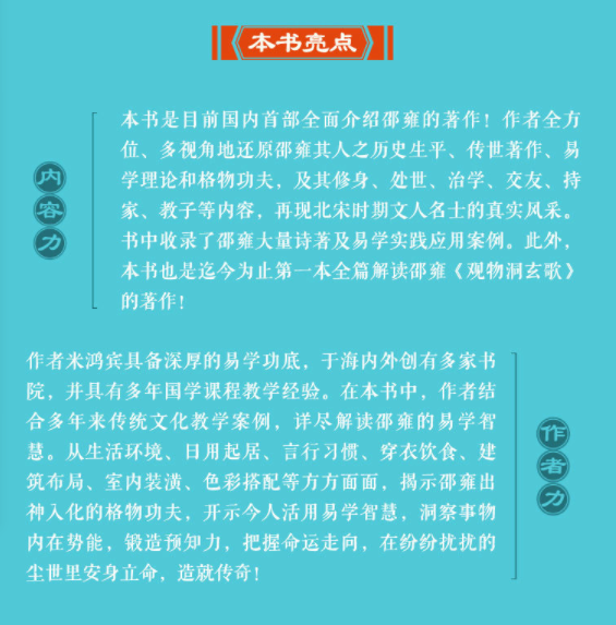 邵雍是北宋著名的哲学家、理学家、易学家、诗人,与周敦颐、张载、程颢、程颐并称“北宋五子”,被后人尊称为“邵子”。因其奇才盖世,德器粹然,数次被荐举授官,均坚辞不受。其学问精湛,综纵儒道,融会贯通,尤精于易道,观天地之消长,推日月之盈缩,考阴阳之度数,察刚柔之形体,通达先天之学,为北宋五子之翘楚;其诗以诗达理、切理,是理学诗派最重要的一支,世称“击壤派”“击壤体”“康节体”。有《皇极经世》《伊川击壤集》等著作传世。