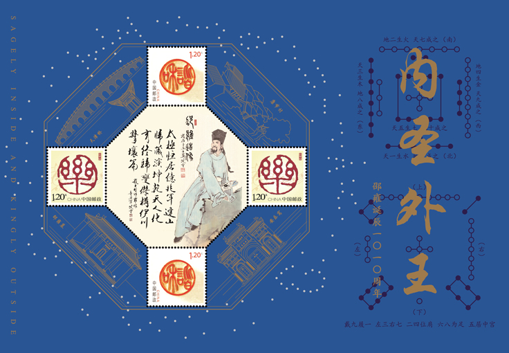 2021年是“北宋五子”中邵雍诞辰一千零一十周年,中国集邮有限公司特别发行《内圣外王——邵雍诞辰一〇一〇周年》个性化邮票套装。