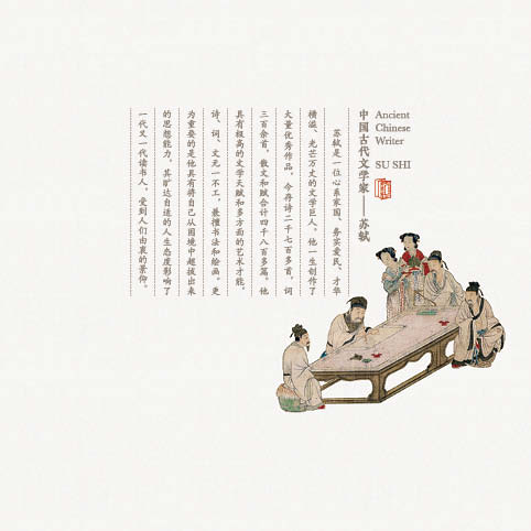 主图选用苏轼好友北宋画家李公麟的《扶杖醉坐图》,该作品也被苏轼以及苏轼的学生黄庭坚评价为最像苏轼本人的画像。