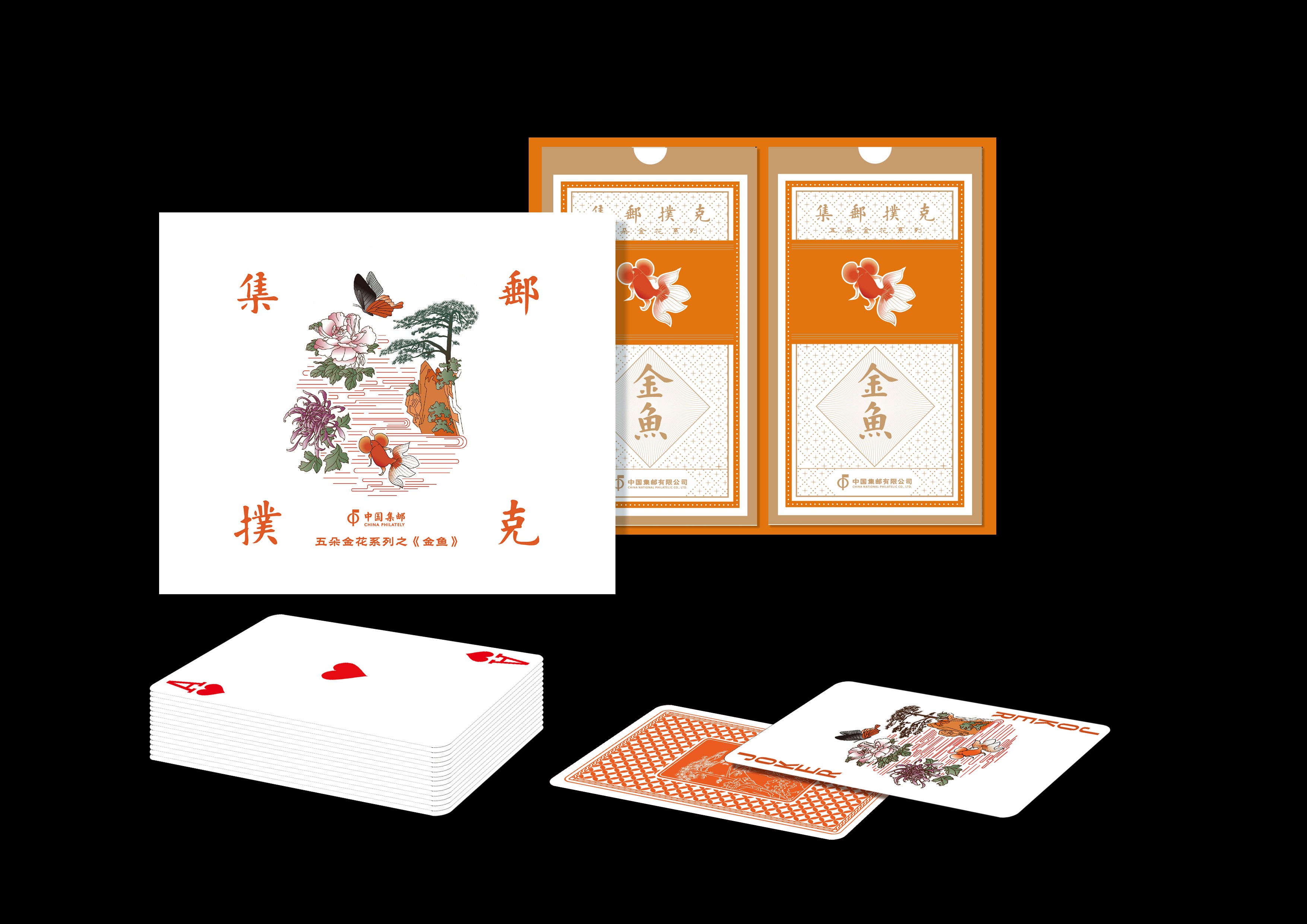 中国集邮有限公司于2023年9月20日发行集邮扑克---五朵金花系列之《金鱼》扑克牌一套两副。