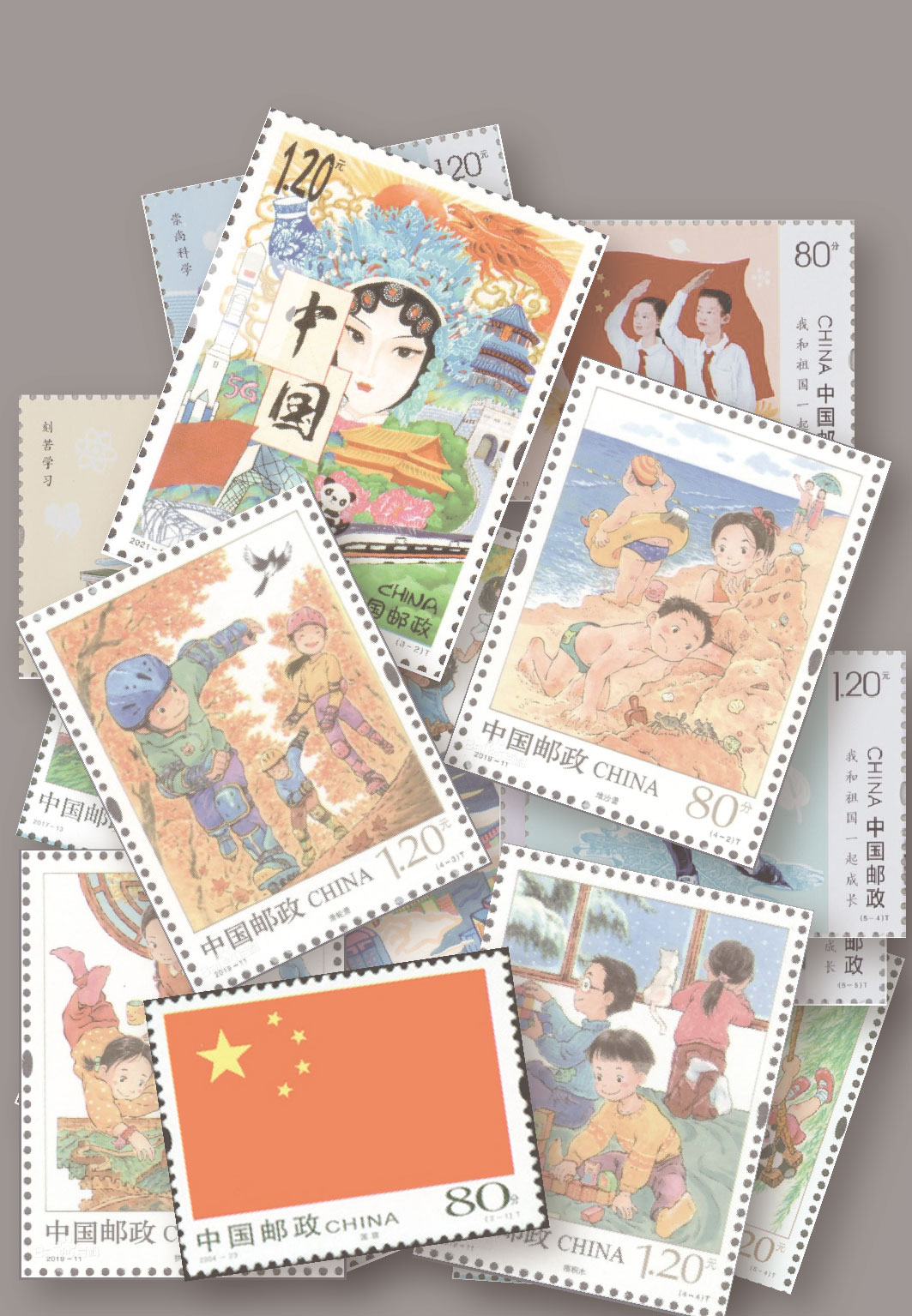 中国集邮有限公司于2023年9月3日发行《我和祖国一起成长》一页邮集创作素材服务包。
