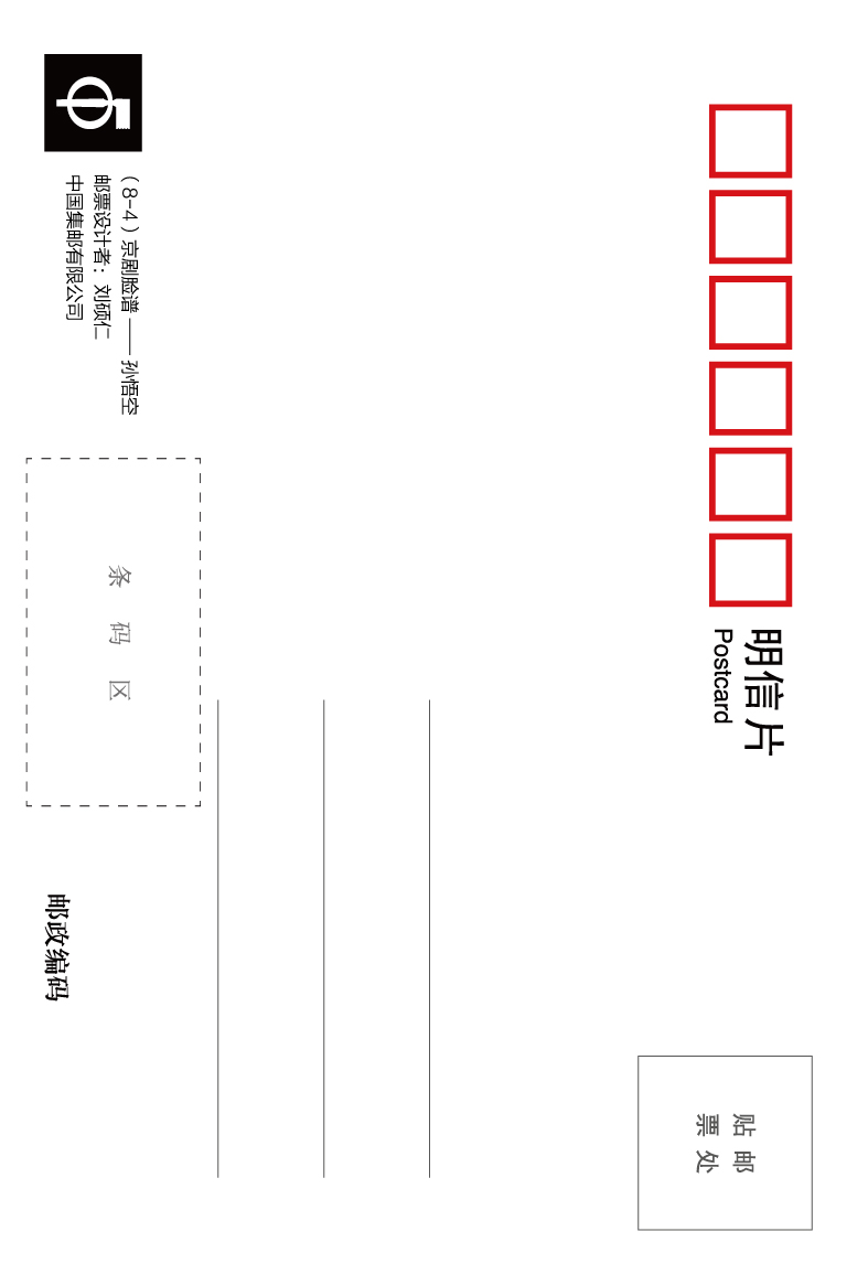 中国集邮有限公司于2024年11月29日发行《京剧脸谱》套色印章明信片套装。该产品为邮票仿印产品,内含8枚明信片,该明信片正面预留盖戳的位置,通过盖戳将邮票图案盖到预留位置,最终盖出来完整的邮票图案,被仿印的邮票为:T.45《京剧脸谱》特种邮票。盖章方式为:将邮票票面图案的不同色彩进行区分,做成四到六枚邮戳,通过依次加盖邮戳,使得图案层层叠加最后组成完整的邮票图案。