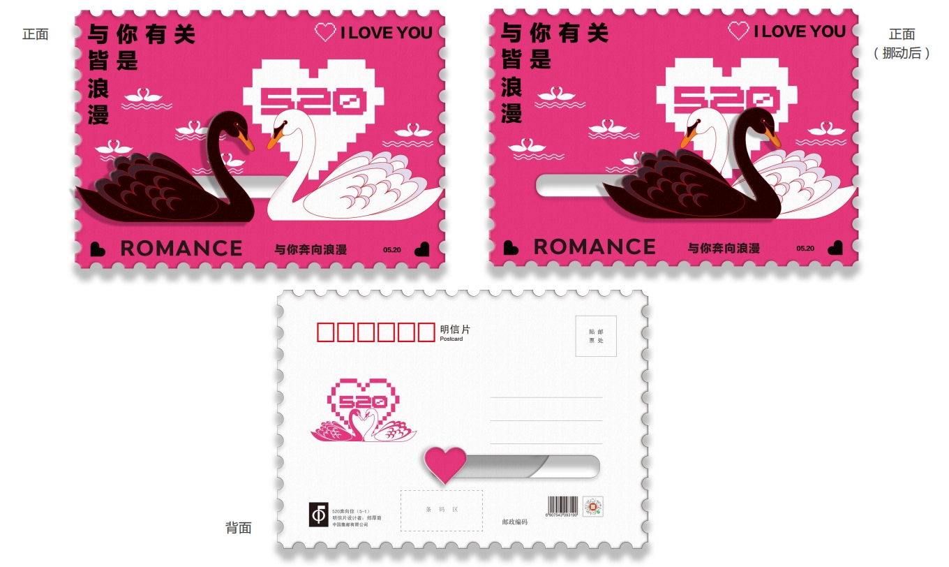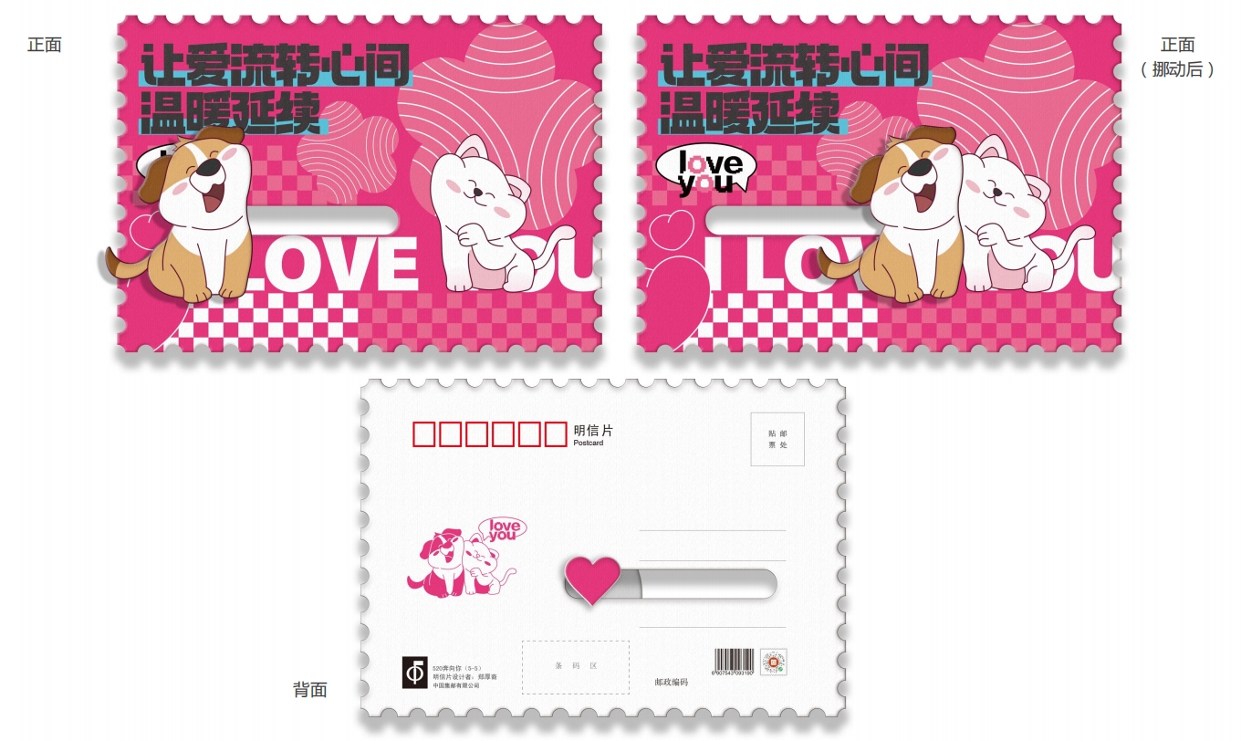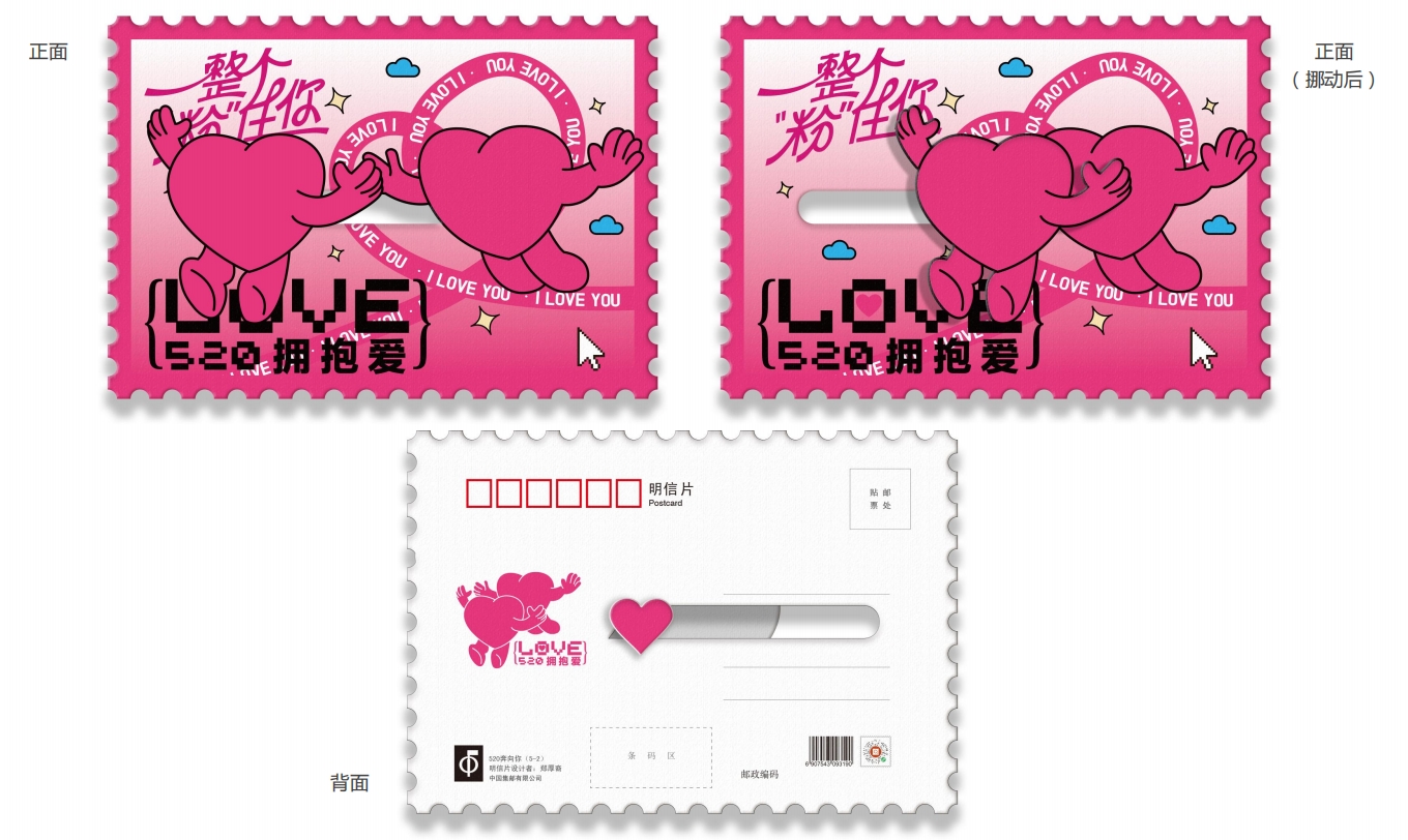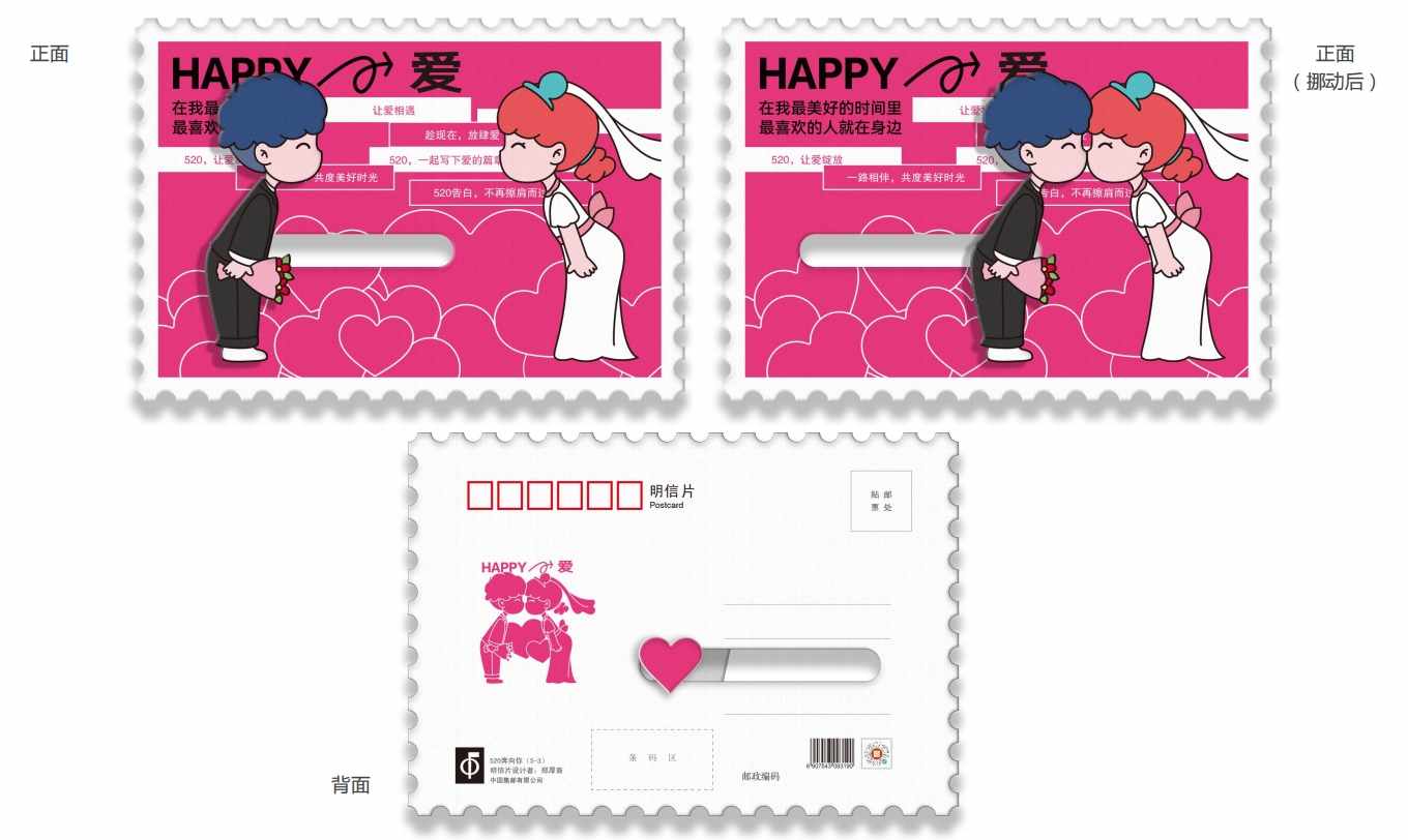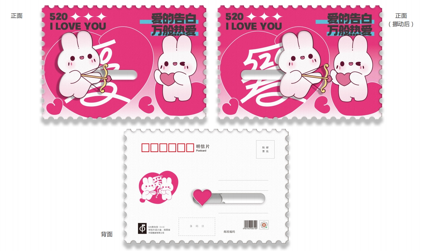 中国集邮有限公司于2025年5月20日发行《我爱你》爱情主题滑动明信片,内含明信片一套五枚。