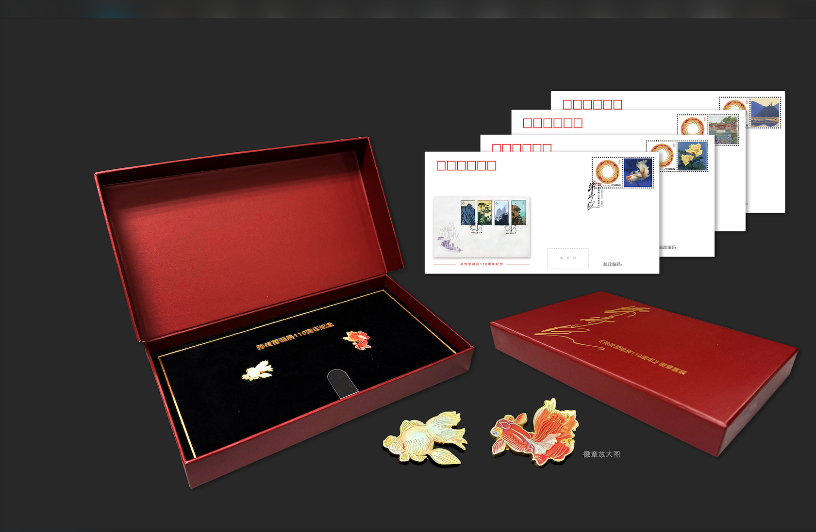 《金鱼》徽章:选用金鱼作为徽章,也是致敬经典的一种形式。《金鱼》邮票是孙传哲先生创作的经典作品之一,深受广大集邮爱好者的追捧,是邮坛的珍作。将先生作品中的金鱼“游”出来,呈现在小小的徽章中,十分的灵动可爱,方便携带。金鱼是中国文化中寓意丰富,核心象征为吉祥富足、美好顺遂,是传统民俗里极具代表性的吉祥符号。