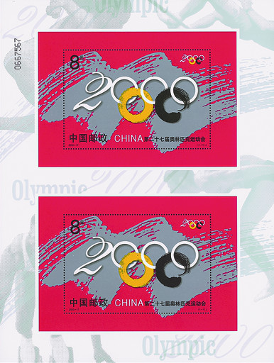 第27届奥林匹克运动会于2000年9月15日~10月1日在澳大利亚悉尼举行。中国共夺得28枚金牌,名列参赛国第三名,成为中国迈向世界体育强国征程中的一座里程碑。当年9月15日中国邮政发行《第二十七届奥林匹克运动会》纪念邮票小型张1枚,图案为艺术化的奥运旗帜,五环与“2000”巧妙组合,同时还首次发行了小型张双连张。