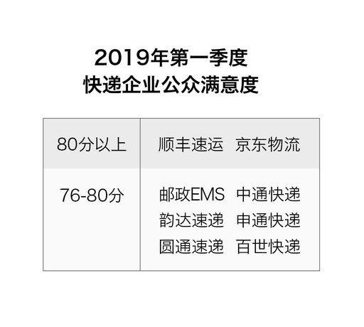 图表3:2019年第一季度快递企业公众满意度