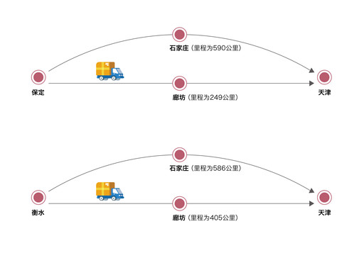图表3 设置廊坊区域集散点后,缩短了邮件传输距离