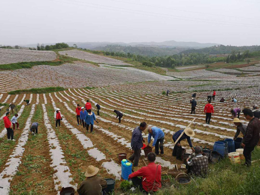 2017年,中国邮政在当地试种朝天椒,在陶岭社区成立朝天椒种植合作社,采取“村集体经济提留+农户土地入股分红+贫困户分红”的经营模式,一方面合作社以每亩500元的价格从村民手中流转土地,让土地得以集中规模化种植,另一方面农民通过在地里干活赚取工资并取得利润分红,这样一来,村民热情渐渐高涨起来。据中国邮政扶贫干部、陶岭社区第一书记郝军介绍,2018年,人均耕地只有1.6亩的陶岭社区种植朝天椒达到了317亩。