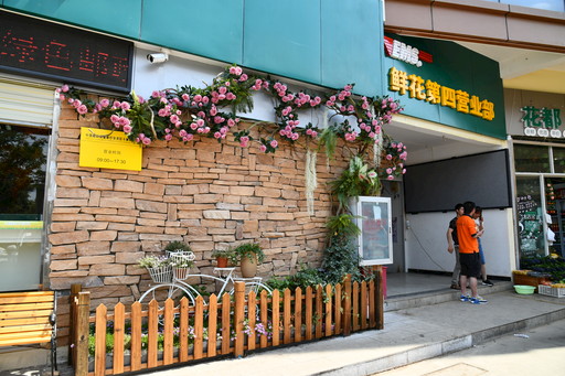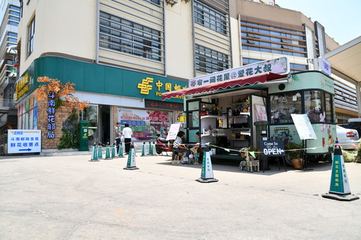 主题邮局的网红打call地—“宥一间花屋@爱花大叔”流动花车。