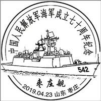 “枣庄舰”封、戳纪念海军建军70周年