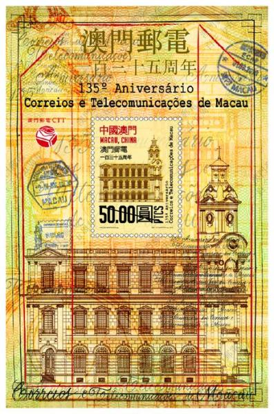 澳门邮电局3月1日将发行《澳门邮电一百三十五周年》邮票1套2枚及小型张1枚。