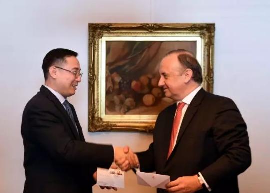 致辞结束后,蔡润大使与德拉塞尔达局长共同为中葡建交40周年纪念邮票首日封签字并向现场来宾赠送纪念邮票。