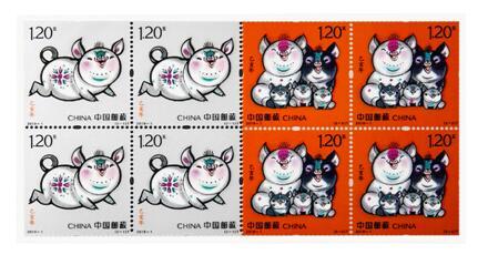 中文名称:《金猪纳福》2019猪年生肖贺岁邮品(四方连纪念金、银)