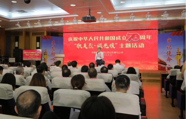 韩广岳同志在讲话中指出,70年前,中华人民共和国的诞生,开创了中国历史发展的新纪元。70年来,特别是改革开放以来,在中国共产党的领导下,新中国的革命和建设事业取得辉煌成就。中国特色社会主义进入了新时代,中华民族迎来了站起来、富起来到强起来的伟大飞跃,迎来了实现“两个一百年”奋斗目标、实现中华民族伟大复兴中国梦的光明前景。伴随新中国70年来的沧桑巨变,邮政事业也发生了翻天覆地的变化。他强调,在新中国成立70周年之际,我们不能忘记为民族独立、人民解放付出鲜血和生命的革命先辈,不能忘记为国家繁荣富强做出卓越贡献的建设者和劳动者,不能忘记为山东邮政发展默默奉献、辛勤努力的一代代邮政人。他要求,各级党组织、全体党员和广大员工,要以爱国的豪情增强对党的事业、对邮政事业的责任感和使命感,要继承革命先烈和山东战邮前辈的光荣传统,弘扬新时代楷模的高尚品德,守初心、担使命,凝心聚力,奋发有为。一定要把国庆系列活动与“不忘初心、牢记使命”主题教育结合起来,通过讲好邮政故事,强化担当意识,扛起国有企业的经济责任、政治责任和社会责任,更好地服务社会民生;一定要加快高质量发展,努力做优做强做大山东邮政,发挥大省作用,在打造行业“国家队”进程中当好主力队员;一定要发扬迎难而上、敢于争先的过硬作风,以更加饱满的精神姿态和攻坚克难的顽强斗志,凝心聚力,共同推动邮政事业蓬勃发展,做出无愧于先辈、无愧于时代、无愧于使命的骄人业绩!