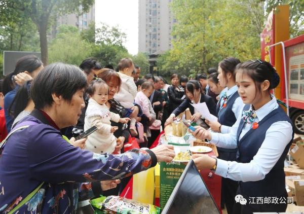 10月17日,第6个全国扶贫日。省分公司联合省物业管理行业协会举办的“消费扶贫进社区”活动,走进南昌市世纪中央城小区,通过物业搭台,农村电商、邮政所唱戏,推动农产品、邮政金融进社区。