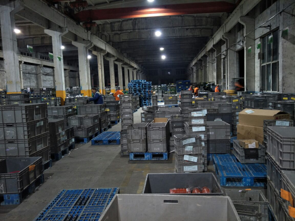 堆满物料的仓库中,作业人员一刻也不松懈。