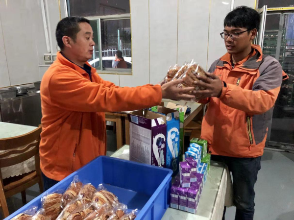 大月期间后勤保障工作亦无半分松懈。当日收发总数超过800辆份时,后勤保障人员及时将面包、牛奶等加班餐派发到加班员工手中,确保他们有充足的体力工作。