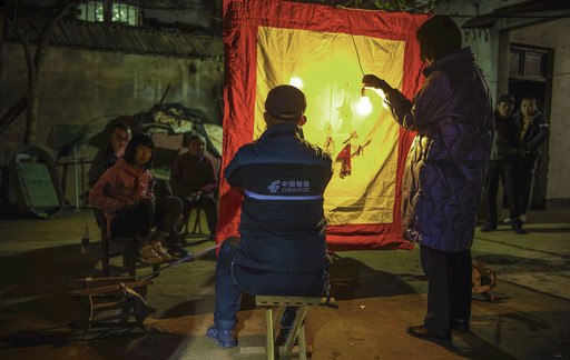 投递员小曹多才多艺,表演皮影是他的拿手好戏,村民李老汉一家坐在自家院子里就能看上皮影戏,乐得全家人合不上嘴。