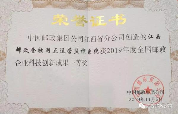 12月2日,从2019中国邮政科技创新交流会上获悉,由我省邮政创造的《江西邮政金融网点运营监控系统》荣获2019年度全国邮政企业科技创新成果一等奖。