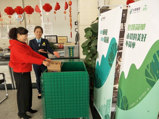 日前,安徽省亳州市邮政分公司在全市邮政网点统一配置了绿色包装回收箱,以减少用户对包装箱随手丢弃的现象,使快递包装尽可能循环使用。为深入推进绿色邮政建设行动,亳州市分公司积极宣传绿色发展理念,不断凝聚环保共识,扎实推进绿色发展工作。图为亳州市分公司芍花路支局营业员在引导客户将拆开后不用的包装箱放入回收箱内。 □常冠林  摄影报道