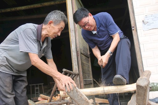 陈泽维帮助贫困户锯柴火。李蓉  摄