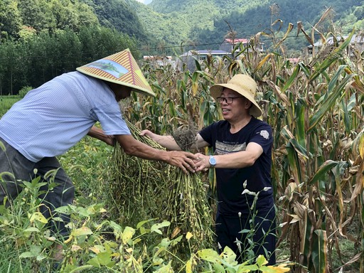 陈泽维帮助贫困户收获黄豆。李蓉  摄