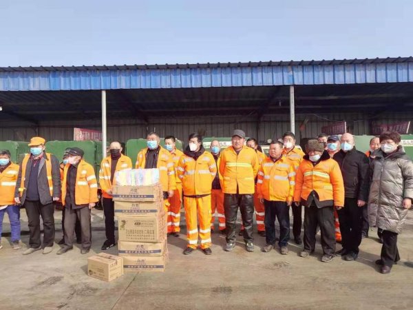 1月30日,为全面做好疫情防控工作,曹县分公司开展了关爱环卫工人捐赠活动,为环卫工人送去了2000个医用口罩及香皂、洗手液、毛巾等防护用品,20余名环卫工人代表参与了本次捐赠活动。
