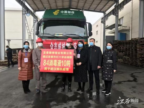 2月2日,江西邮政宜春市分公司免费将10 吨 84 消毒液运往武汉。