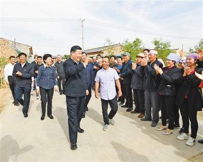 6月8日至10日,中共中央总书记、国家主席、中央军委主席习近平在宁夏考察。这是6月8日下午,习近平在吴忠市红寺堡区红寺堡镇弘德村看望移民搬迁群众,向村民们挥手致意。 新华社记者 谢环驰摄
