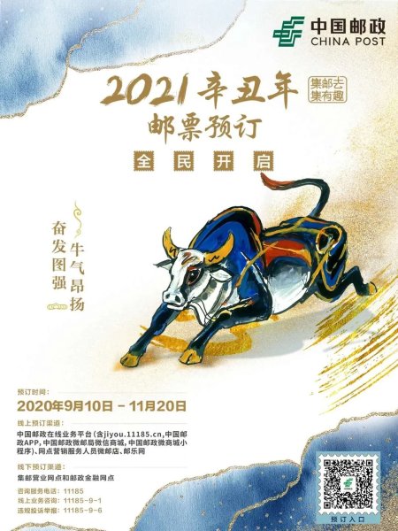 此外,2021年邮票预订还首次推出“以邮会友”和“邮福同享”预订优惠活动,用户添加网点营销服务人员企业微信好友,或邀请亲朋好友组队预订,均有机会参加抽奖,赢取2021年邮票大小版预订和生肖大小版购买资格,详情可咨询各网点营销服务人员或关注中国邮政在线业务平台。