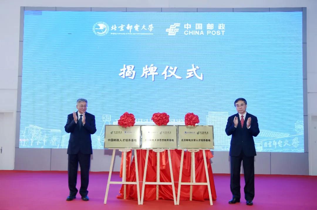 刘爱力、吴建伟共同为“中国邮政人才培养基地”“北京邮电大学人才培养基地”“北京邮电大学思想教育基地”揭牌