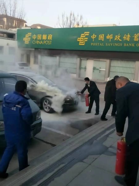 正在指导客户办理业务的客户经理黄风良听到有人高喊“着了火、着火了”,他没有多想,随即拎起一瓶手提式干粉灭火器火速冲了过去,当时自燃车辆车浓烟滚滚,夹杂着“噼啪”的响声,黄风良没有后退,当即拔掉灭火器保险插销对准车辆进行喷射。闻讯赶来的综合柜员杨秀明和正在该支局指导业务的县分公司金融业务部房启杰,也加入抢险灭火队伍。