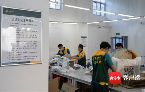 同时在每个收寄环节确保信息实时互通,离岛免税购物邮件收寄后第一时间安排消杀、打包、分拣、封发,开辟“绿色通道”优先发运、优先处理,赶发最有效、最快速的发运频次。