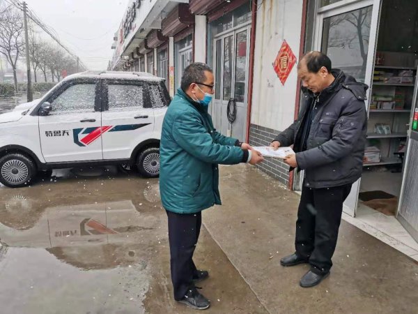 图为宋庄支局投递员夏需孝冒着雨雪将报纸按时送到客户手中