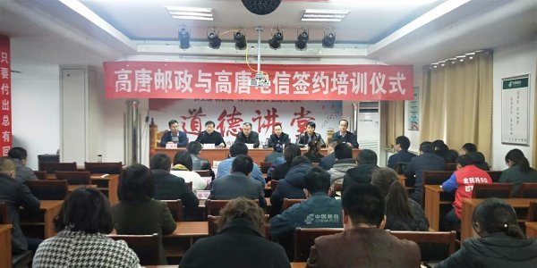 3月4日下午,高唐县邮政分公司与县电信分公司就邮件自提代投签订合作协议。双方主要负责人及全县所有营业网点负责人参加签约仪式。