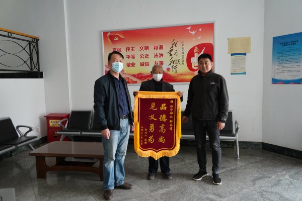 “我父亲身体本就虚弱,而且健忘,上次幸亏郑大哥救护及时,才躲过一劫”,老人儿子激动地说,“父亲心里一直牵挂着这事,身体痊愈后逢人就打听那个把他送回家的人,一年多的时间几经周折,才知道郑大哥在邮政工作。今天把锦旗送过来,了却了父亲的一大心愿,谢谢你们的救命之恩。”