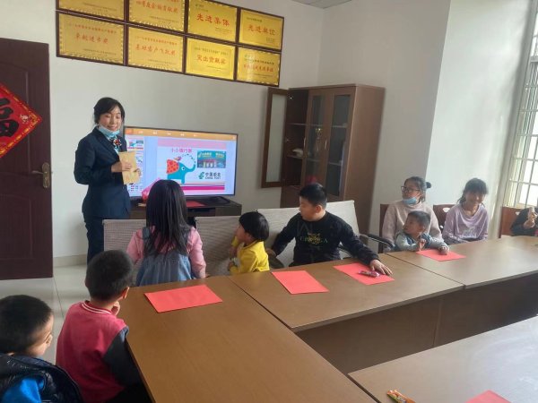 崔家庄支局经理张朝琳通过图片和游戏的形式,向孩子们介绍货币的起源和发展,教他们认识学习各类外币、理财小窍门,并科普了人民币的防伪特征。