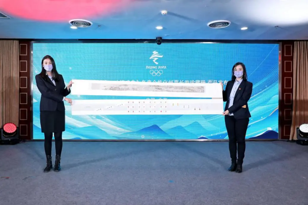 中国集邮有限公司与北京冬奥组委联合推出的“冬奥盛会冰嬉盛典”个性化邮票长卷套装,是首次采用宣纸邮票纸印制的古画题材个性化邮票、首次创新使用隐形齿孔的邮票、首次完整呈现北京冬奥会主要元素的邮票、首次实现一图双景的双长卷邮票。产品将中国古代盛大的冬季冰雪文化与北京2022年冬奥文化元素相结合,让清代冰嬉盛景和现代冬奥盛典穿越时空、交相辉映,以今敬古、以古承今,于中华文化的血脉中,体现中国智慧,展现中国体育精神,彰显中国文化自信的力量。