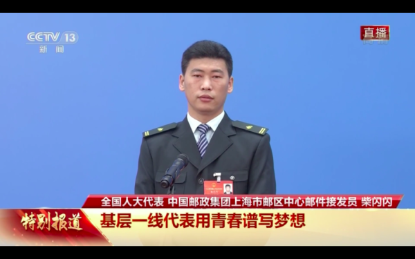 柴闪闪:大家好,我叫柴闪闪,闪闪发光的闪,是一名85后的农民工代表。17年前,我从湖北农村走进上海邮政,在火车站台上装卸邮包就是我当时每天的工作,一天3000多袋扛下来,躺在拖盘上就再也不想起来,与理想工作的巨大反差也曾让我多次想过放弃,但在企业工会的关怀下,我坚持了下来,并慢慢融入了邮政这个大家庭。2011年,我报名参加了全市邮政业务大比武,得益于多年的工作积累,在决赛中夺得了全能第一的好成绩,也因此获得了更多成长和煅炼的机会。17年以来,在社会各方面的关怀和帮助下,我不仅通过磨练成长为了一名新时代的技术工,更是用青春谱写出梦想,将自己的人生照耀得闪闪发光。
