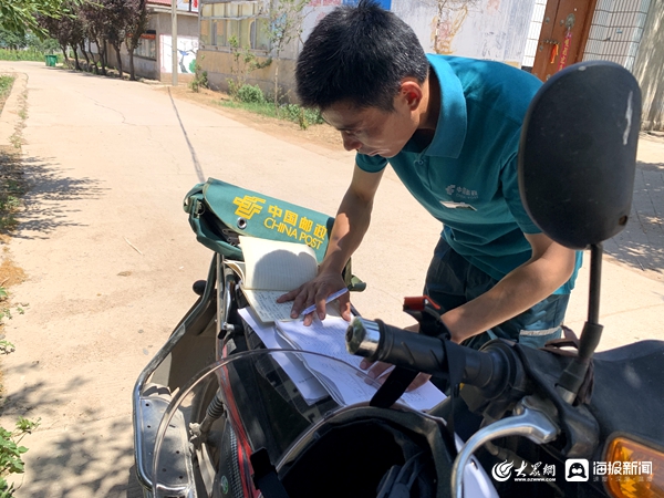 “大爷,您看这个人认识不?”烈日下汗流浃背、挨家挨户打听……在蒙阴县坦埠镇潘庄村,爱心邮政小哥王德建正骑着摩托车,趁中午吃饭的空隙,打听着临沂籍烈士亲属的相关信息。