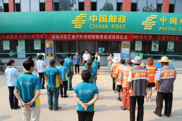 8月2日,中国邮政集团有限公司山东省禹城市分公司户外劳动者服务站点集中启用仪式在十里望邮政支局举行。中国邮政集团有限公司山东省禹城市分公司党支部书记、总经理邢照勇,市总工会党组书记、主席杨欣出席仪式。仪式上,与会领导为“户外劳动者服务站点”授牌,并现场为户外劳动者们发放了清凉物资。启动仪式后,与会领导邀请现场户外劳动者们参观爱心驿站,体验爱心驿站提供的服务,并进行沟通交流。