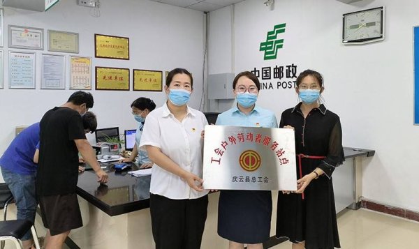 7月18日,庆云县总工会分别为中国邮政集团有限公司山东省庆云县分公司尚堂网点、新华路网点、迎宾路网点挂牌“户外劳动者驿站”。这是庆云县总工会今年又新增的3家户外劳动者服务站点。