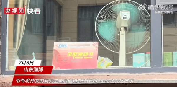 她将通知书交给79岁的爷爷拆开