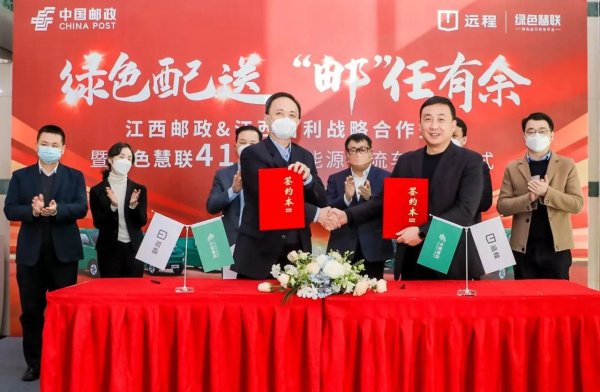 绿色配送、“邮”任有余。12月22日,江西省邮政分公司与江西吉利新能源商用车有限公司在南昌举行战略合作签约暨绿色慧联415台新能源物流车交车仪式。双方基于在各自领域的专业优势,进一步提升合作关系,合力创造新的发展机遇,共同参与构建绿色生态和产业新业态。据悉,此次江西邮政采购租赁的415台吉利远程V6E绿色新能源汽车,将全部投入到江西农村地区,有利于进一步优化全省农村快递网络布局,打通农产品进城、工业品下乡的双向物流,提升农村邮政公共服务能力。