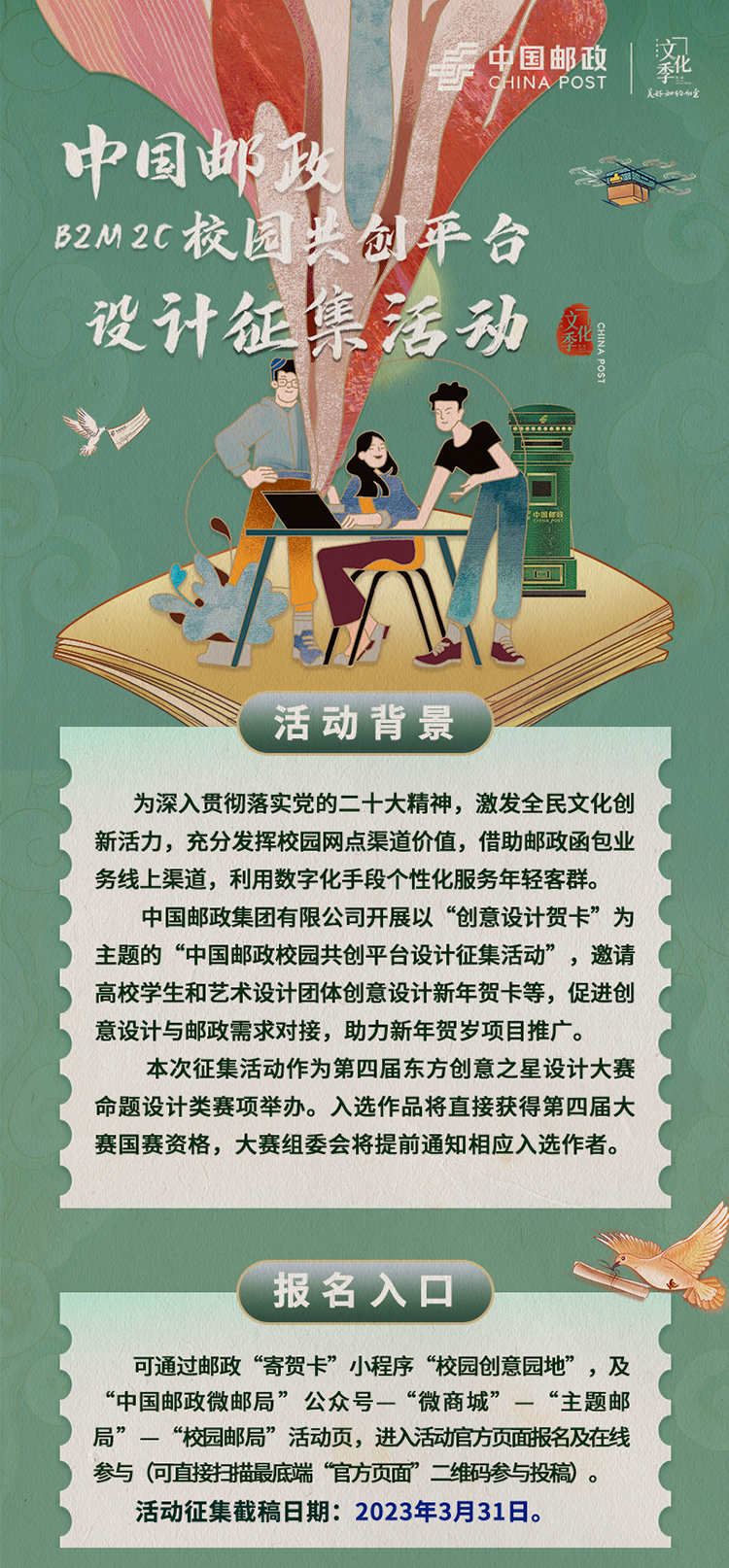 有奖丨大学生集合!中国邮政B2M2C校园共创平台设计征集活动启动啦