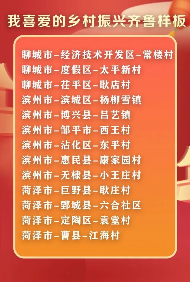 附:“我喜爱的乡村振兴齐鲁样板”名单
