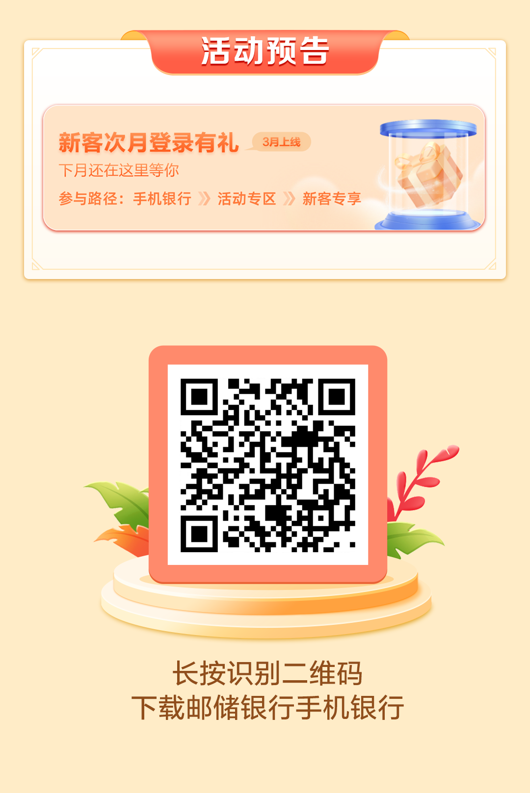 3.活动对象:活动期内手机银行新客。(手机银行新客指在指定时间内注册手机银行且绑卡后首次登录手机银行的客户)