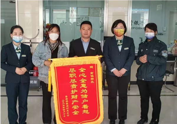 近日,聊城高唐邮政分公司南镇支局工作人员成功拦截一例电信金融诈骗,帮助客户保住了血汗钱。4月11日,客户将一面写有“全心全意为储户着想,尽职尽责护财产安全”的锦旗送到该支局工作人员手中表示感谢。